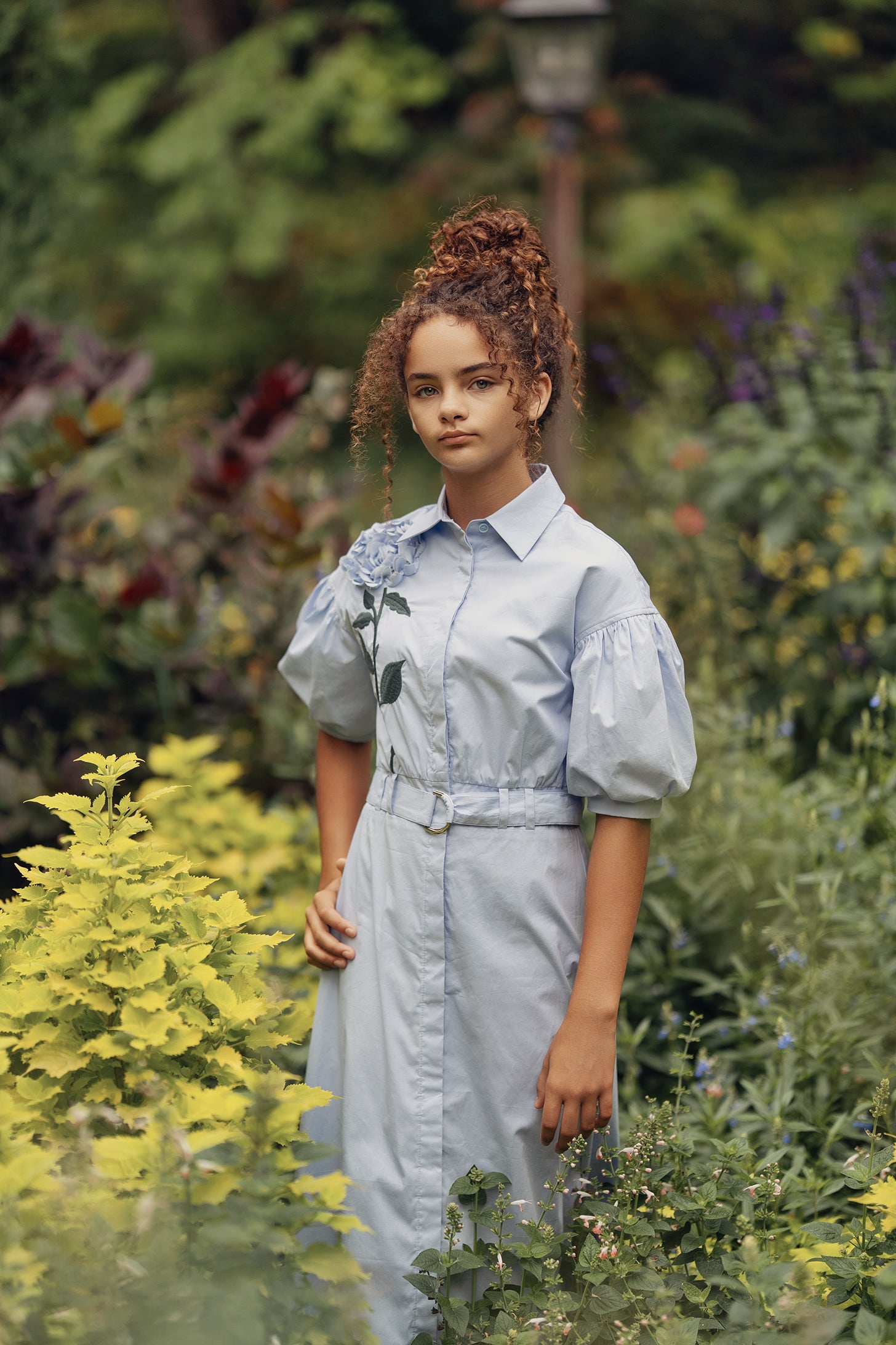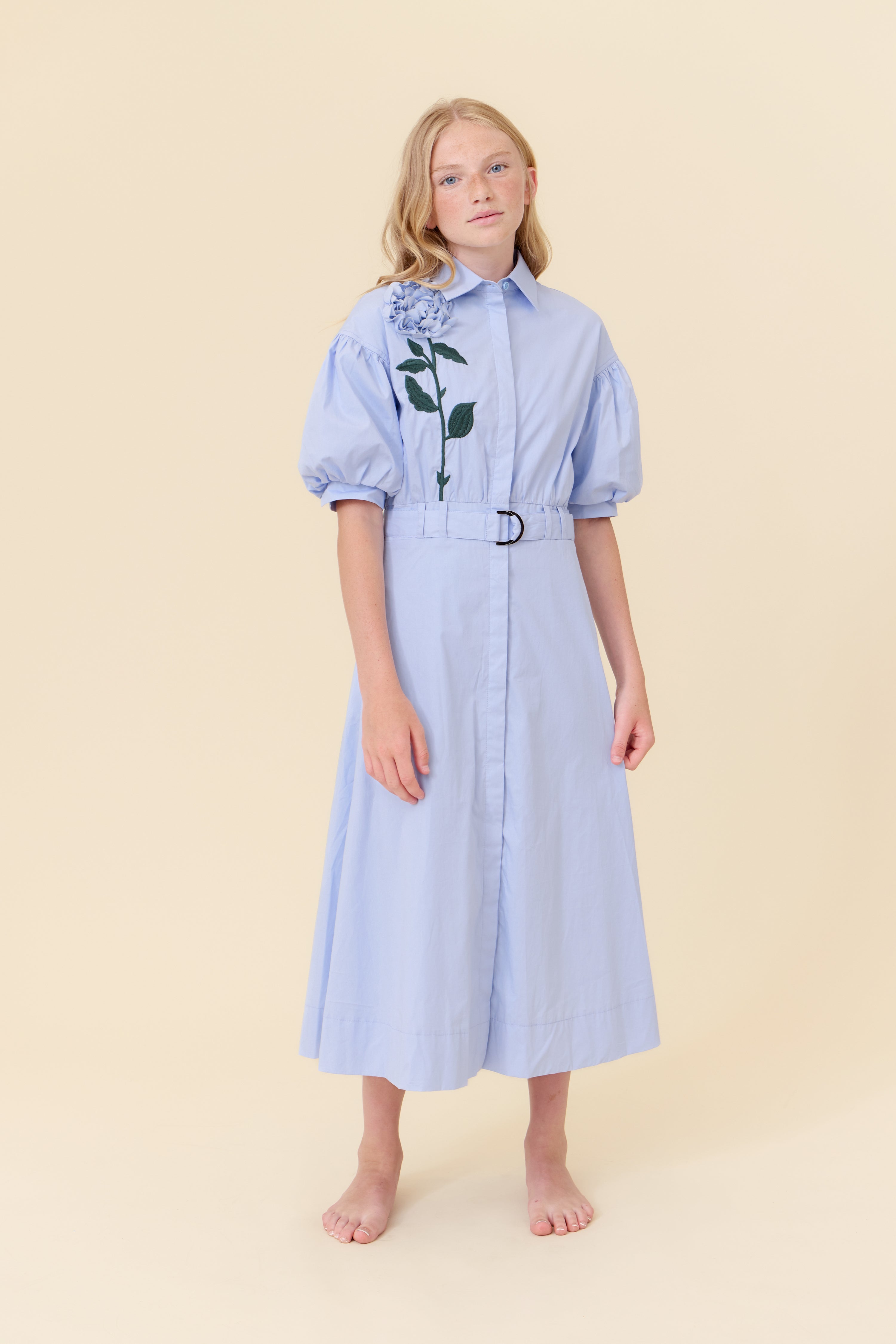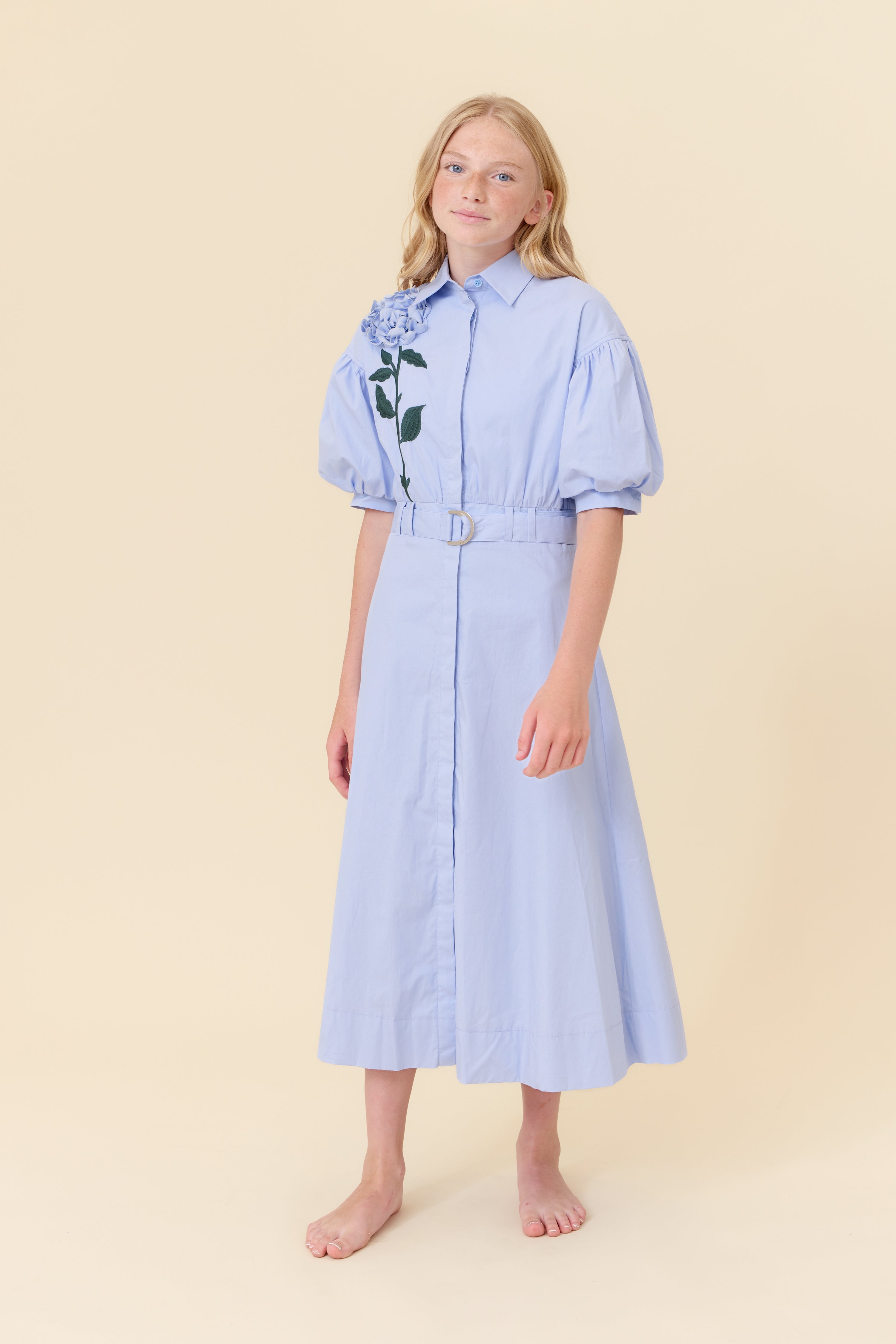 Soir Victoria applique blue dress