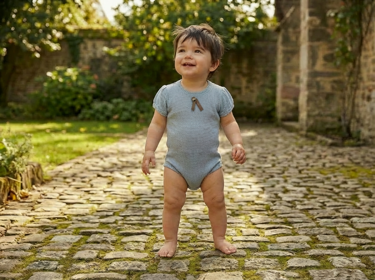 Bee & Dee Waffle blue romper
