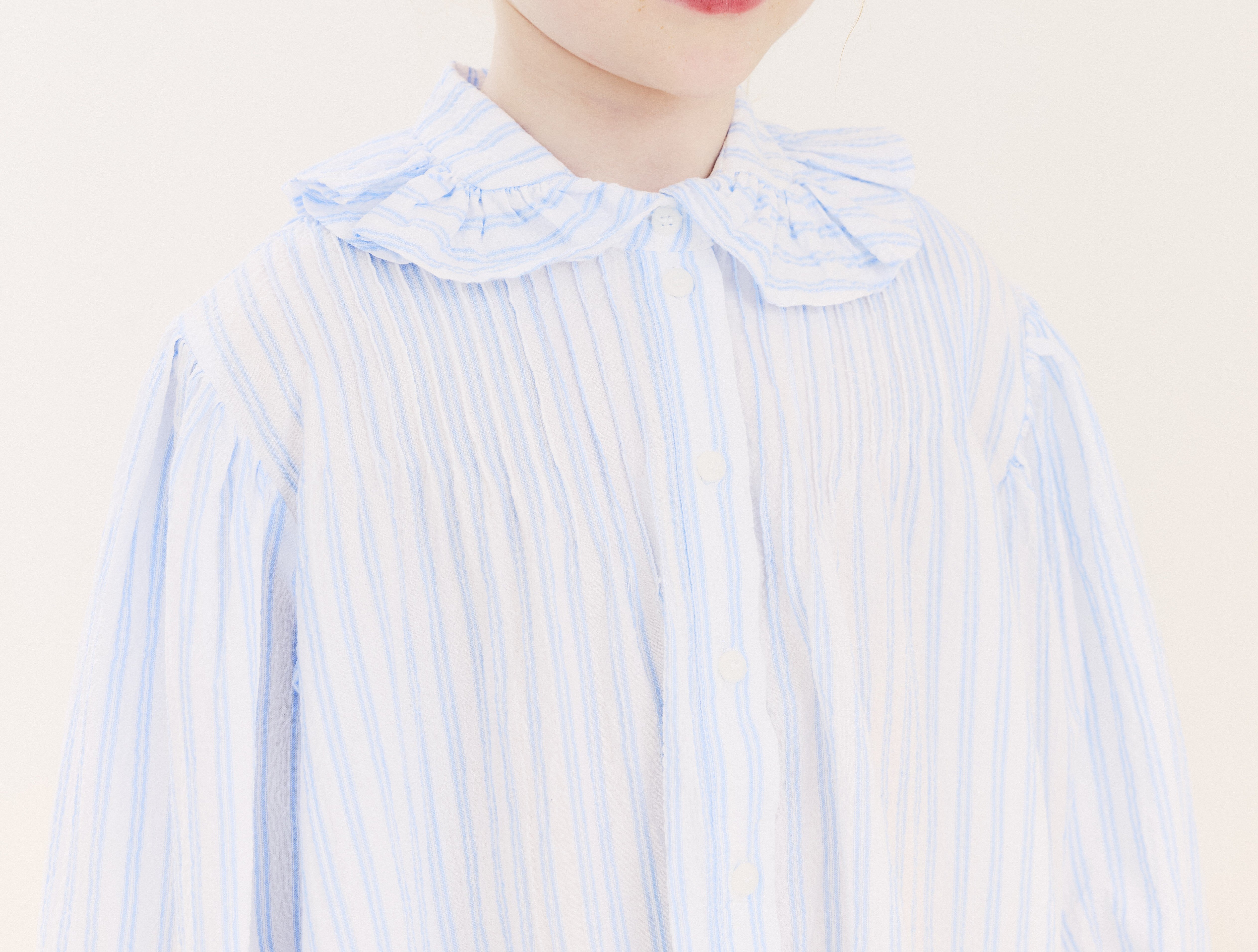 Morley Ruffle collar stripe blue dress