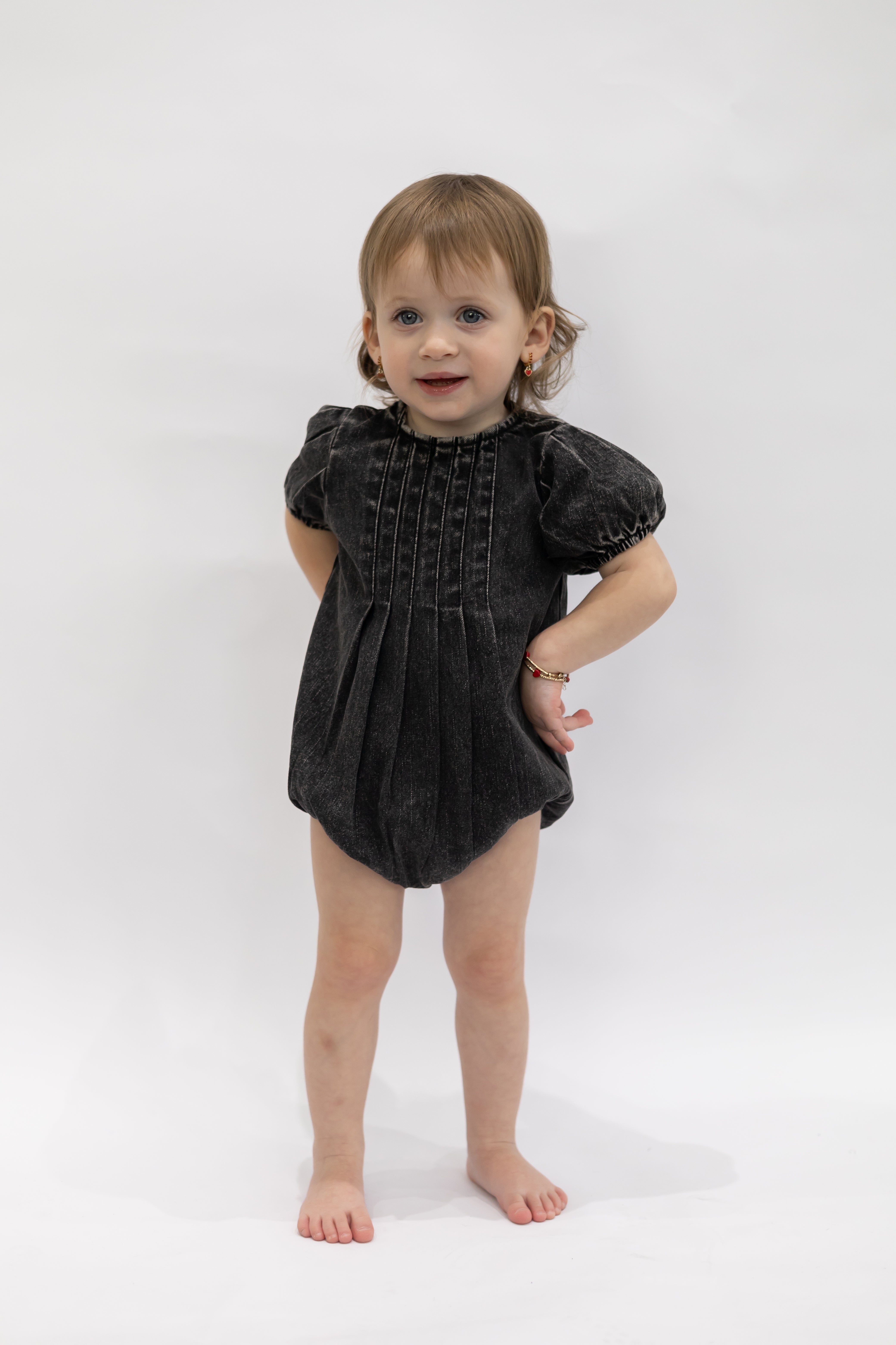 Ra & Da Front Pleat Black Denim Romper