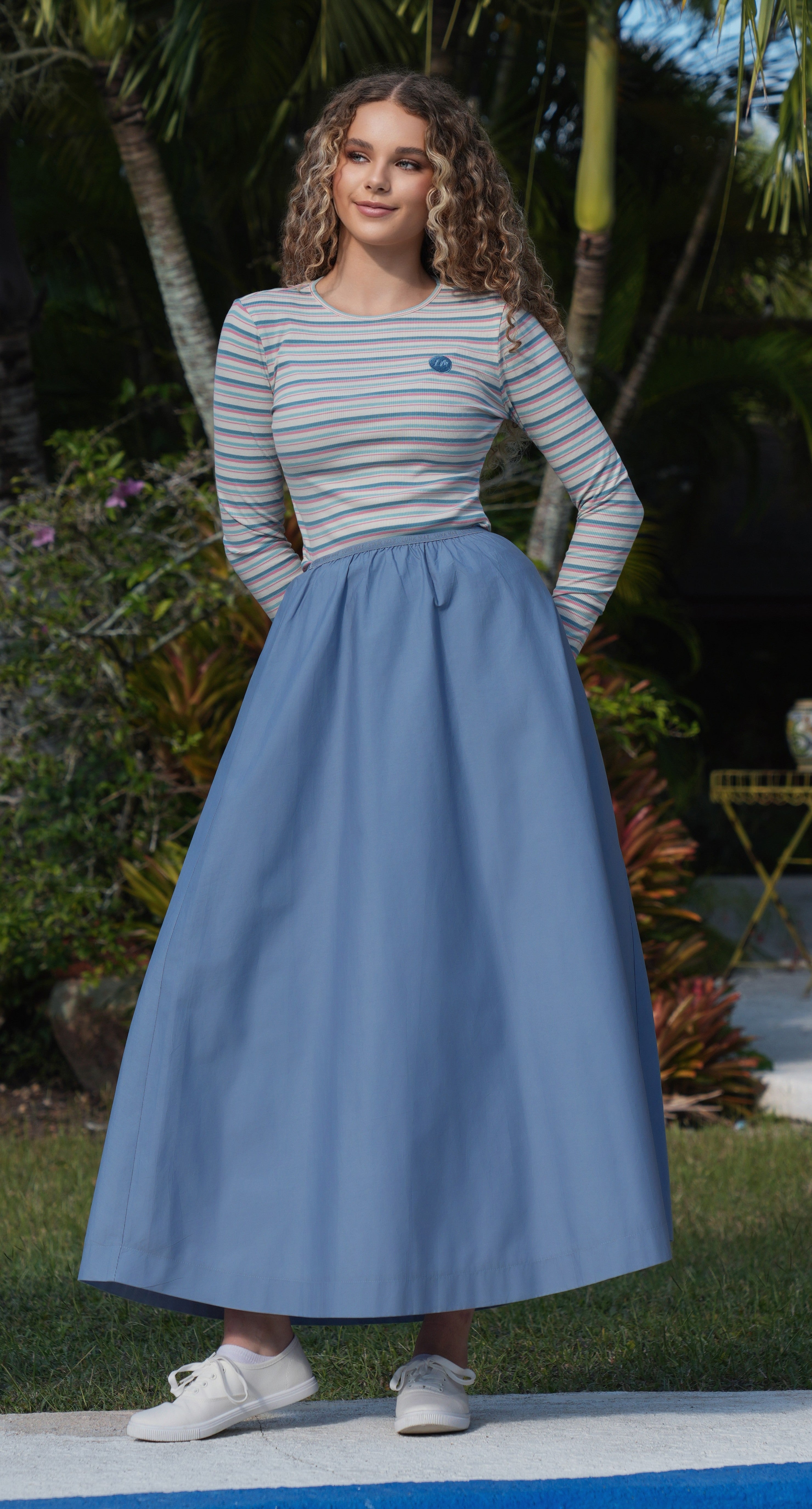 Luna Mae Ella mid blue stripe tee
